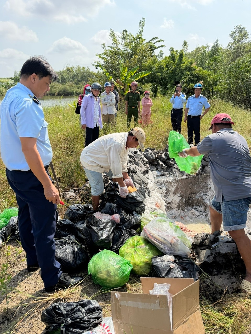 Hình ảnh phối hợp địa phương xã giám sát tiêu hủy hàng hóa