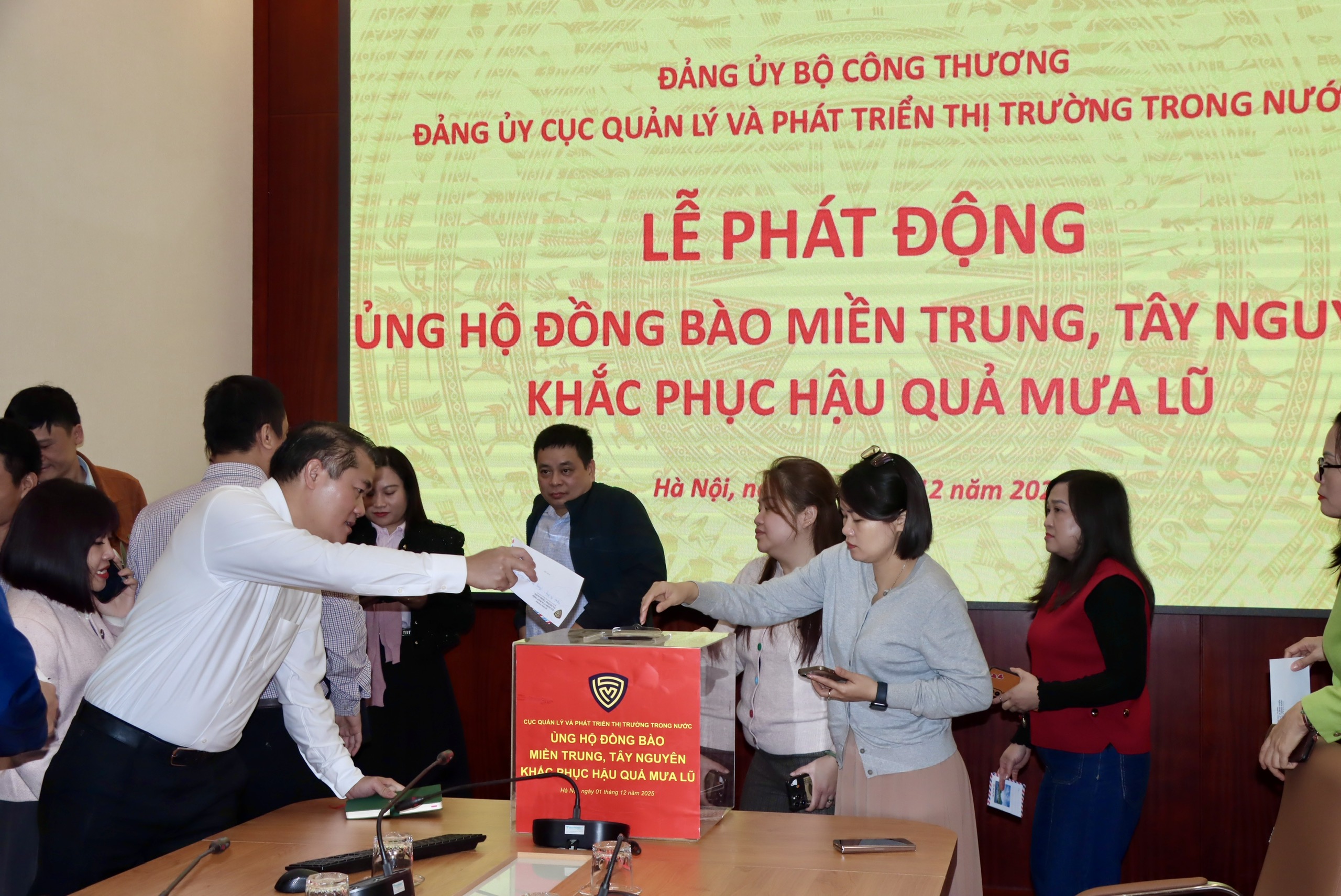 Trong những ngày qua, đồng bào các tỉnh khu vực miền Trung, Tây Nguyên đang phải oằn mình chống chọi với đợt mưa lũ đặc biệt lớn, gây thiệt hại nặng nề về người và tài sản, nhiều hộ gia đình, cá nhân cần được hỗ trợ, giúp đỡ. Với tinh thần “tương thân tương ái”, “lá lành đùm lá rách”, sáng 1/12/2025, Cục Quản lý và Phát triển thị trường trong nước đã phát động ủng hộ đồng bào miền trung, Tây Nguyên bị thiệt hại do mưa lũ gây ra. Cục trưởng Trần Hữu Linh chủ trì.